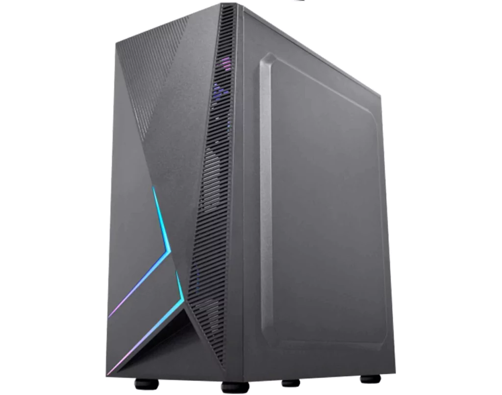 Painel preto com grade de ventilação e barra de LED RGB
